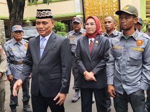 METRO–Ketua Dewan Perwakilan Rakyat Daerah (DPRD) Kota Metro, Ria Hartini, mendampingi Walikota Metro, Bambang Iman Santoso, mengikuti upacara Sumpah Pemuda ke 97 Tahun 2025, di halaman Kantor Walikota setempat, Selasa (28/10/2025).