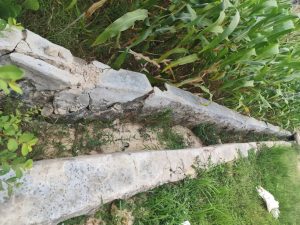 Material drainase yang digunakan sangat mudah hancur ketika dipegang dan diremas, bahkan bentuknya tidak lurus melainkan berliku-liku seperti ular. Kondisi ini sangat memprihatinkan, karena proyek yang seharusnya menjadi prasarana yang berfungsi dengan baik justru rusak parah dalam waktu singkat.