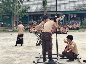 “Yang saya hormati para pembina pramuka, dan staf tata usaha, serta adik-adik Pramuka Penegak Ambalan A.H. Nasution dan Tri Bhuana Sakti yang saya banggakan,” ujar Ibnu Budi Cahyana.